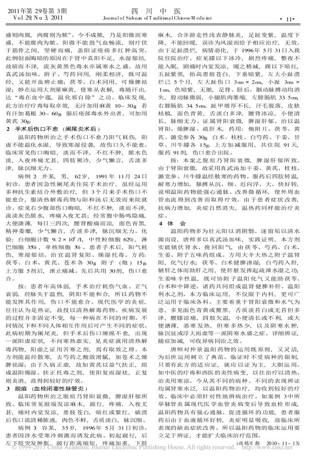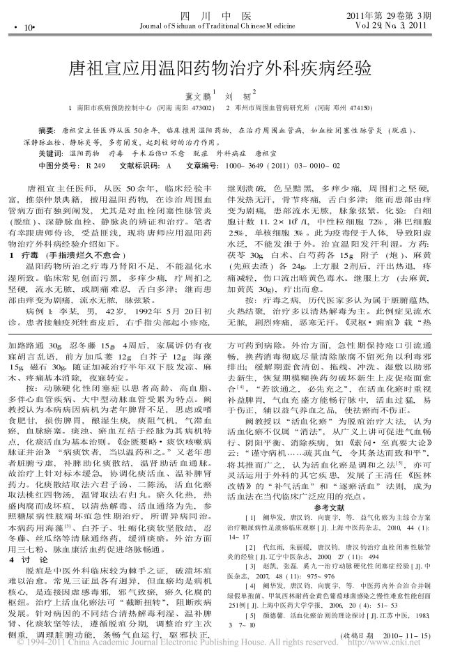 唐祖宣应用温阳药物治疗外科疾病经验