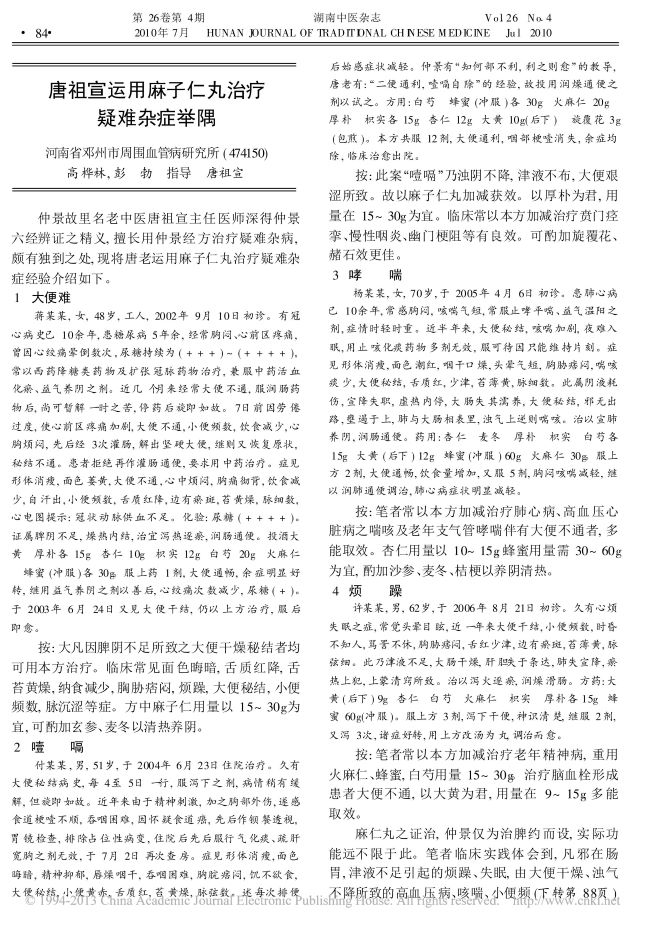 唐祖宣运用麻仁子丸治疗疑难杂症举隅